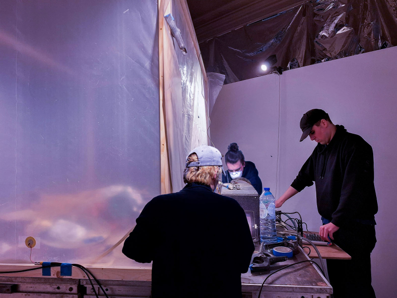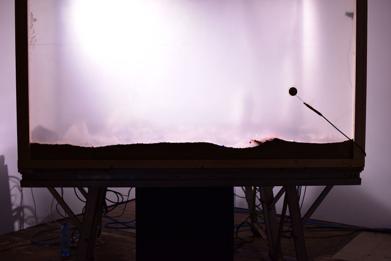 OOG VAN DE STORM is een geluids- en videoperformance van het trio Mathias Kuypers, Caroline Coolen en Stijn Wybouw, gebaseerd op een reeks stormstudies. Het is een echo van een eerder project waarin het trio het landschap rond Genk onderzocht, en een fascinatie voor stuivende duinen aanleiding gaf tot verdere exploratie.